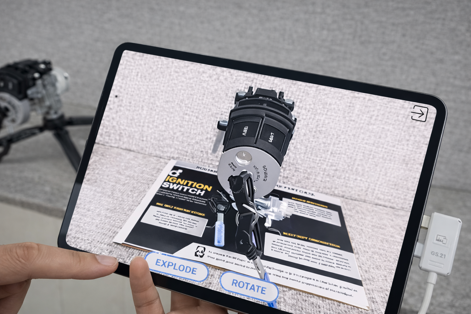 AR tablet visualisation and interactive 3D annotations build product knowledge — component identification, quality tolerances, and defect recognition — built entirely from your own specifications.