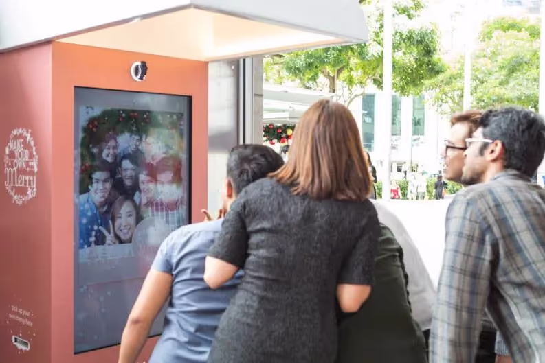 NTUC's Christmas-themed pop-up store in the CBD featured an interactive photo kiosk where visitors could enjoy an Augmented Reality (AR) photoshoot. The experience aimed to enhance engagement and attract more foot traffic to the store during the festive season.