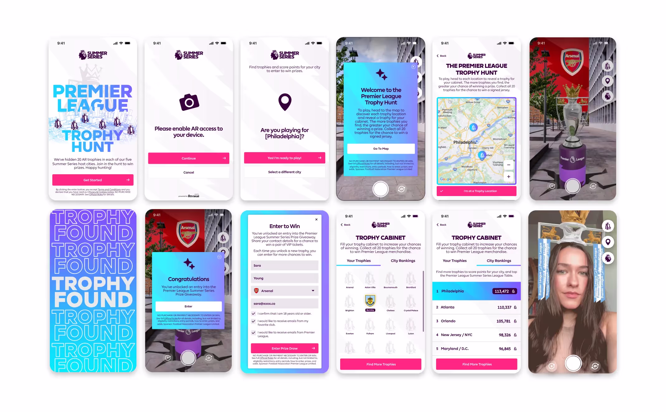 For fans outside of the select cities, a separate AR experience was created to allow them to participate in the excitement. This included interacting with the Premier League trophy in AR, using a face filter for unique photo opportunities, and entering a sweepstakes for exclusive Premier League merchandise. This ensured that all fans, regardless of their location, could be a part of the Summer Series excitement and feel connected to the Premier League and its teams.