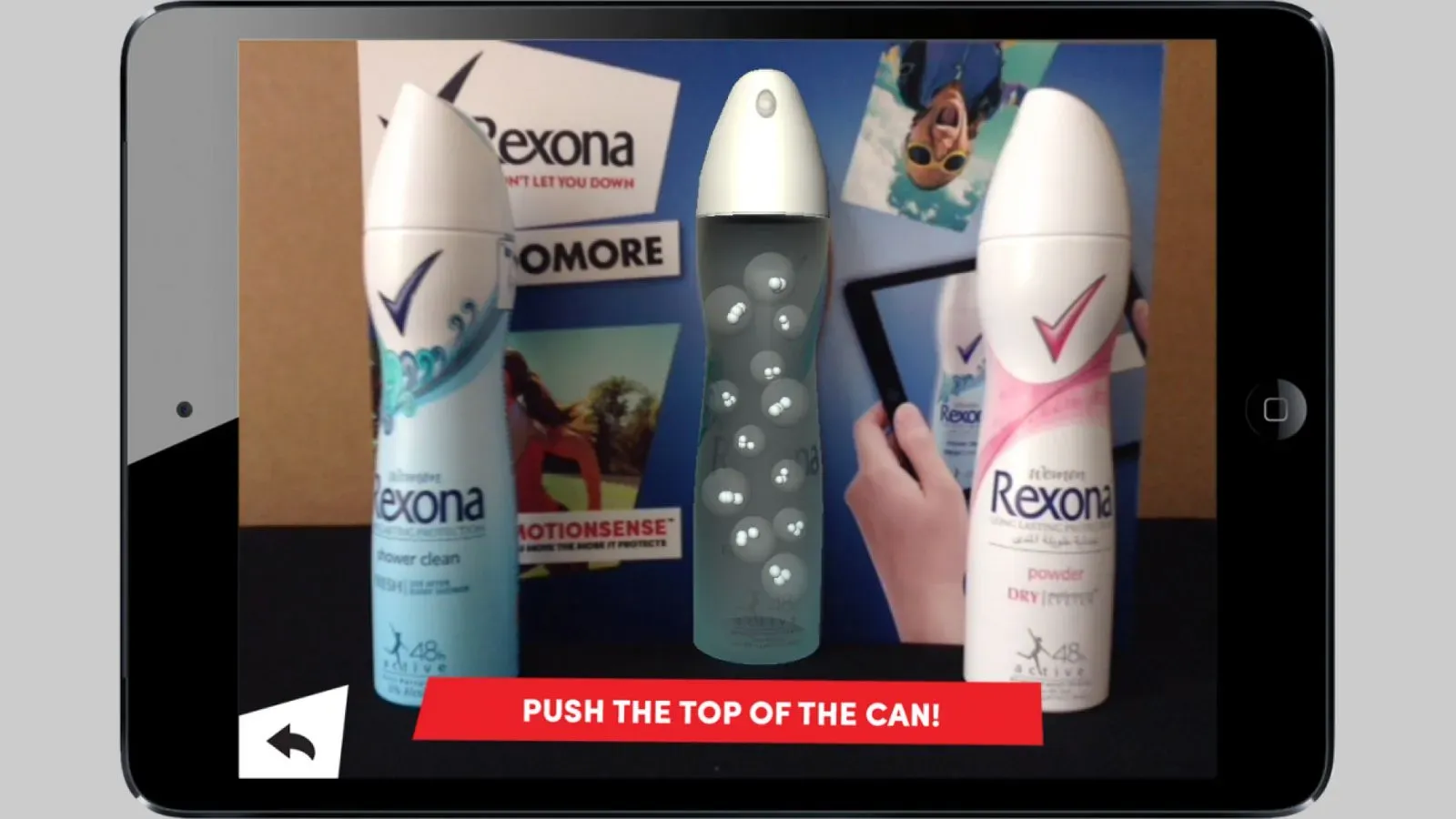 Rexona/Unilever commissioned the development of an iPad application to promote their new product featuring Motionsense technology. The goal was to educate customers on how this innovative solution works. The concept centered around using Augmented Reality (AR) to make the can appear transparent, revealing the special capsules inside, and providing a personalized experience of their functionality.