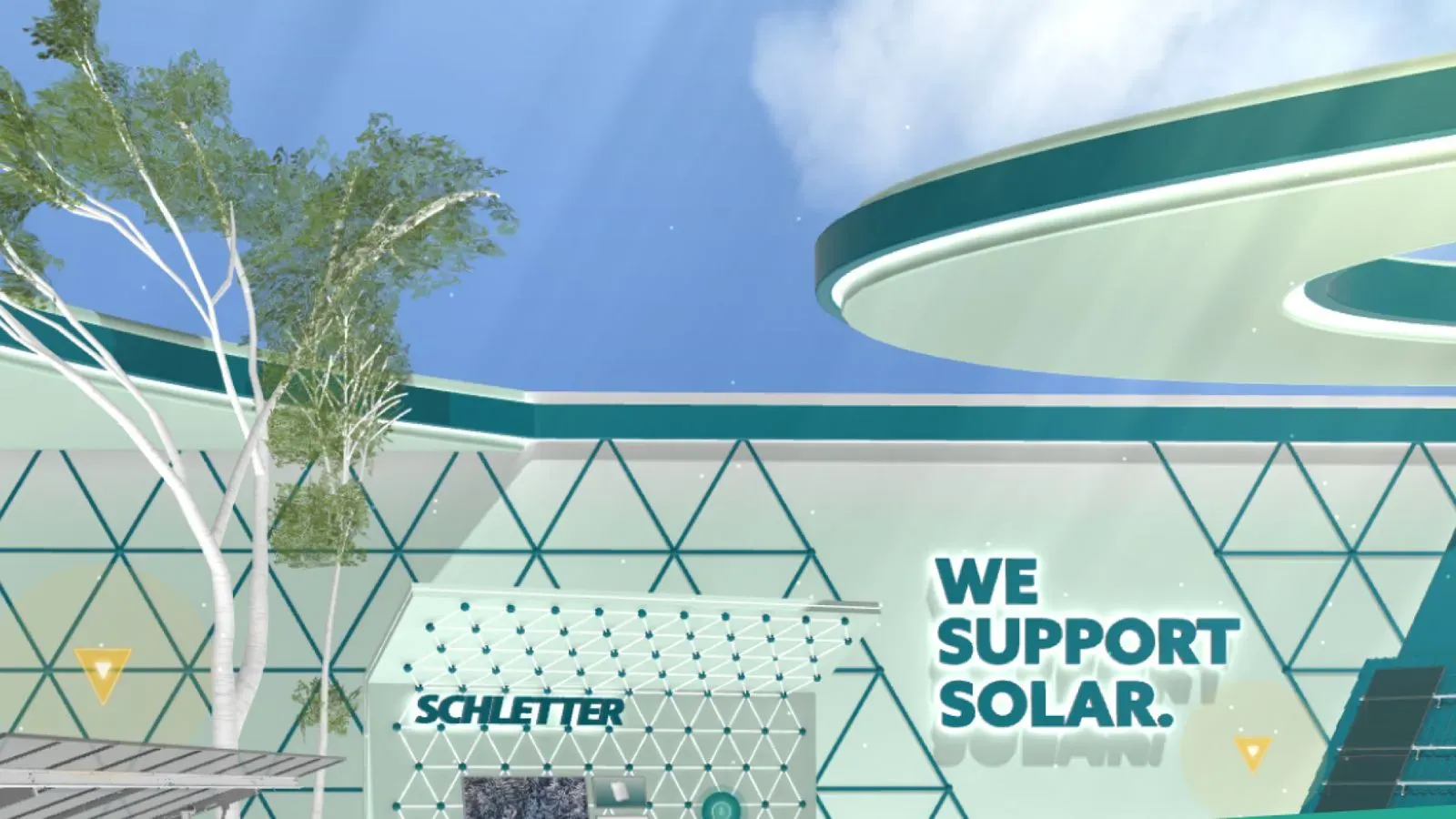 Central to the experience is the interactive exploration of Schletter's mounting systems in a 3D environment. This approach allows users to understand the systems' functionality and benefits, particularly their stability, through interactive elements and detailed product overviews. The foundation of the "House of Schletter" is Demodern's proprietary corporate metaverse platform, ensuring optimal performance across devices without compromising the high-quality 3D visualization of the products.