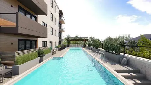 The terraced façade of The Drake is a standout feature, allowing for ample use of glass to capture the picturesque views of White Rock Lake. Balconies provide residents with outdoor living spaces, creating a harmonious connection between the interior and the surrounding landscape. This design approach ensures that The Drake not only complements the natural beauty of the area but also engages with the street and neighboring properties in a meaningful way.