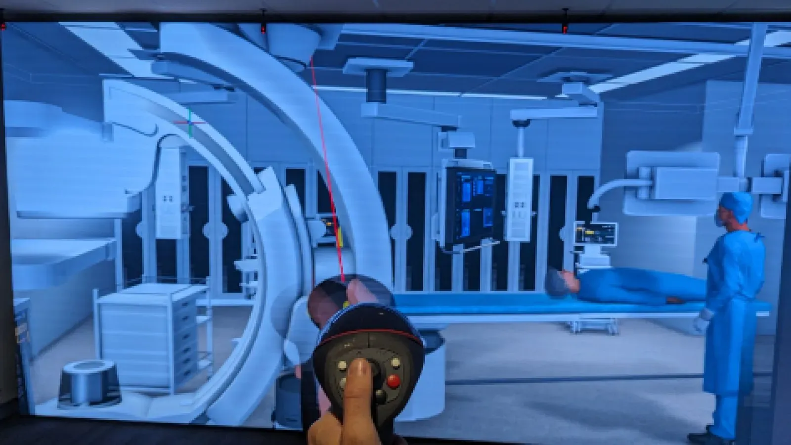 The immersive experience is further heightened by six cameras that track users, aligning them with virtual datasets. Headtracked active 3D glasses enable users to explore models from various angles, enhancing the realism of the experience. A handheld interactive device allows users to manipulate datasets, further enhancing the multisensory immersion, complemented by a 5:1 surround audio system.